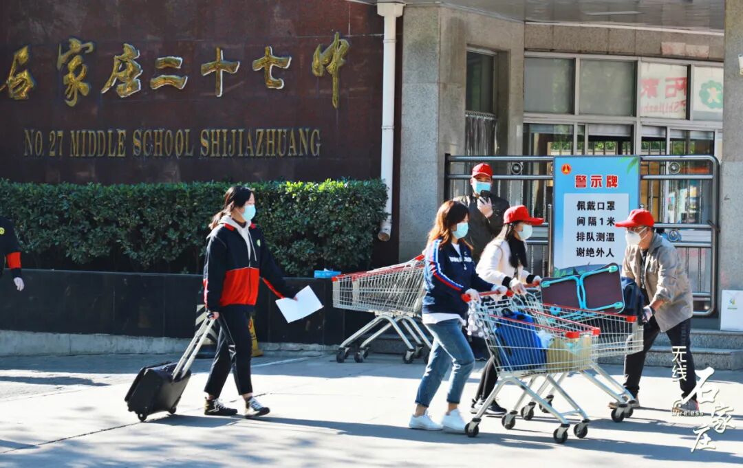 河北正定中学为了解决同学们行李多的困难校门外,同学们的行李经过消毒后经爱心摆渡车运送到宿舍楼外对应区域老师和工作人员分楼、分层放置好行李同学们按照指定路线到达宿舍楼前分散领取行李,进入宿舍