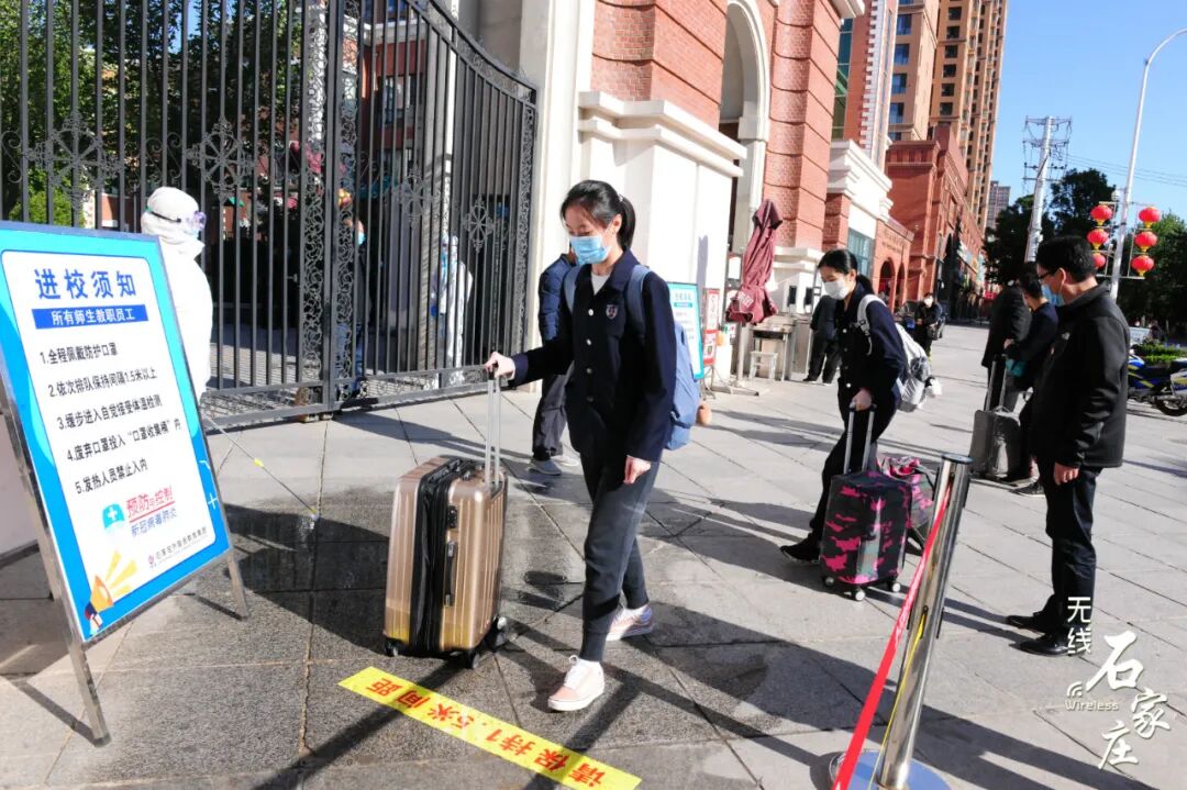 学校各项准备工作做得如何?有哪些措施保障师生安全呢?小编这就带您直击开学现场! 石家庄一中学生们都佩戴口罩有序进校校门口有专人对学生行李逐个消杀班内课桌间保持安全距离每人严格佩戴口罩