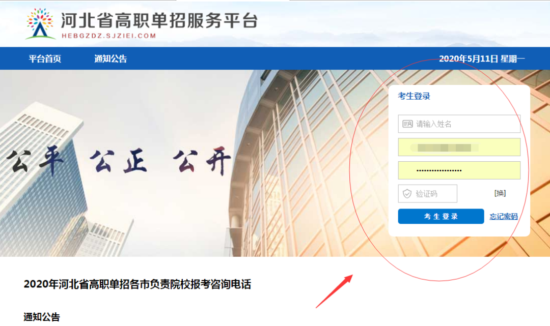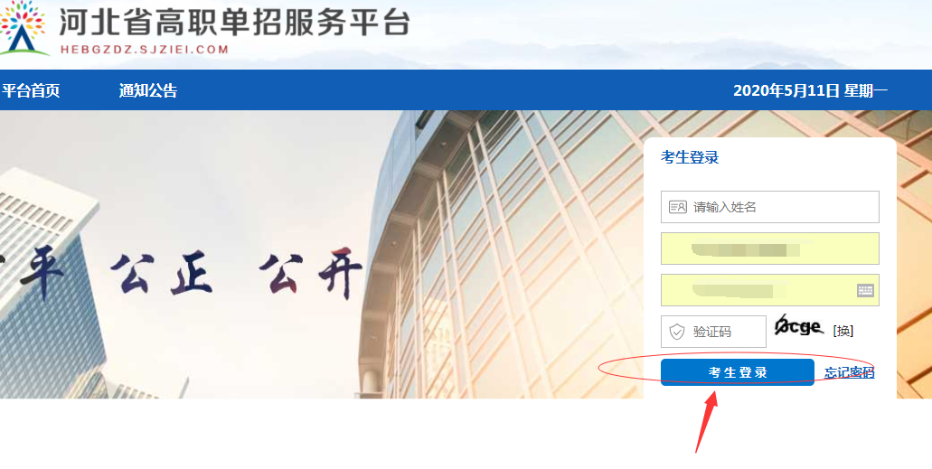1.打开河北省高职单招服务平台(网址:http://hebgzdz.sjziei.com,以下简称“单招平台”)进行报考。在右侧输入考生号,登陆密码等信息。