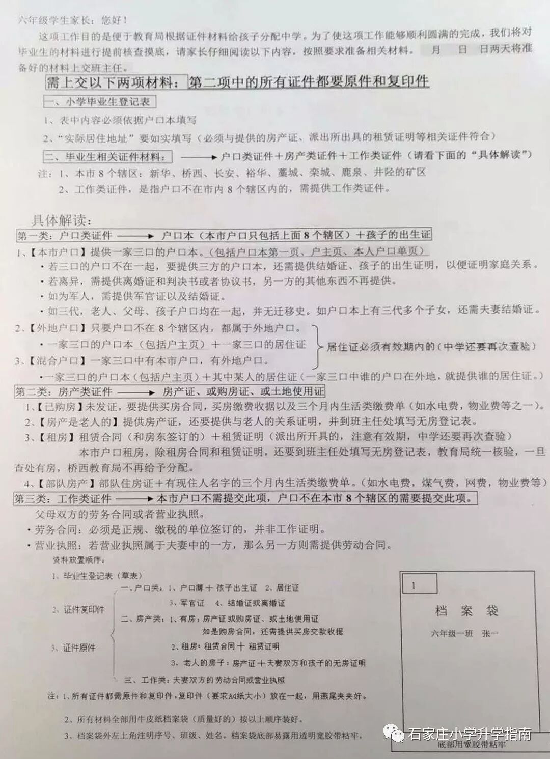 如果说初中想跨区,比如小学长安区,初中想去桥西区,就是要办理跨区转学,学校会让填写相关表格。如果选择民办校,那就是放弃分配,需要写保证书!此两类填写后学校将不再统一安排公立校分配工作,大家一定要想明白!