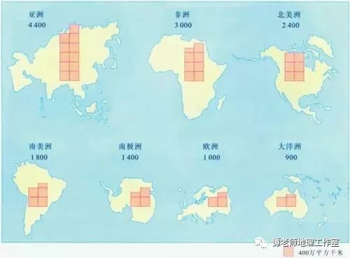 1、七大洲名称及按面积排序: